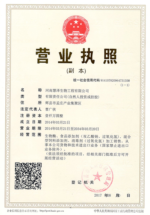 - 鄭州慧澤生化科技有限公司是一家充滿(mǎn)朝氣的科研生產(chǎn)型高技術(shù)企業(yè)。目前公司業(yè)務(wù)主要集中在精細(xì)化工、食品化工和微生物制劑行業(yè)。公司現(xiàn)已建成鄭州、焦作、新鄉(xiāng)三個(gè)生產(chǎn)基地,其中河南新鄉(xiāng)輝縣孟莊生產(chǎn)基地占地70畝,總投資達(dá)1.2億?,F(xiàn)擁有年產(chǎn)100000噸過(guò)氧化氫消毒劑,年產(chǎn)8000噸的過(guò)氧化鈣和年產(chǎn)5000噸的雙乙酸鈉的生產(chǎn)線(xiàn),同時(shí)開(kāi)設(shè)有生產(chǎn)總量5000噸的枯草芽孢桿菌、地衣芽孢桿菌等微生態(tài)制劑發(fā)酵生產(chǎn)車(chē)間。公司始終堅(jiān)持“以人為本,科技興企,品質(zhì)優(yōu)良,用戶(hù)滿(mǎn)意”的經(jīng)營(yíng)宗旨。為客戶(hù)創(chuàng)造價(jià)值更多的價(jià)值...